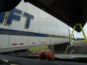 As an inertia came over the vehicle and the mpg readings slowly improved, we noticed a curious behavioural change come over us. At first it was kind of a game to see how high we could get the mpg. Then we started to believe we were ‘going green’ and helping the environment by slowing down. Finally we realized we were just being economical. Well aware of the great distances we needed to travel over the course of our journey, we didnt want to spend most of our dough on gas. So we ultimately set the cruise control to around double-nickels and inched across Washington state, with every vehicle on the road, including big rigs and RV’s, charging by in the fast lane- many with none too salutary gestures of disapproval :) .